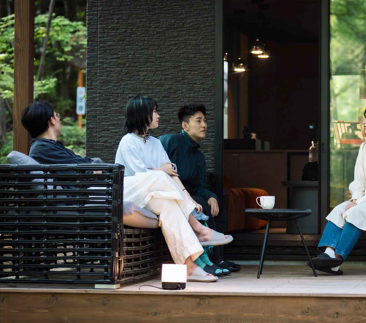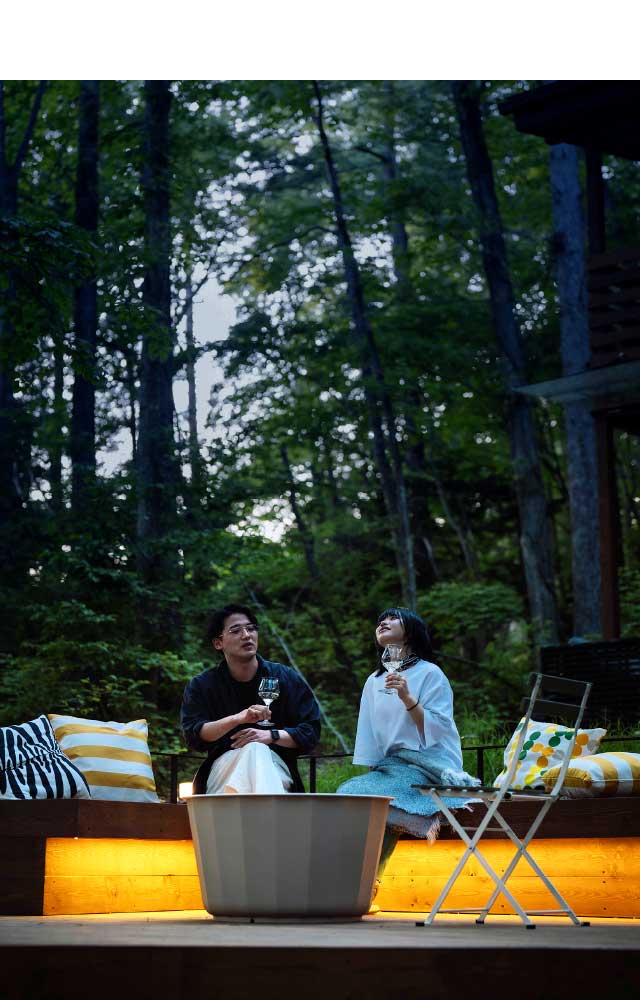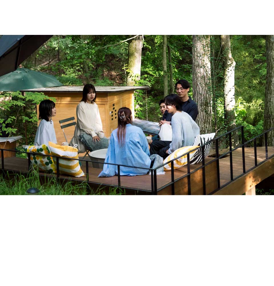 揺れる木々、鳥のさえずり、月明かりと星空。移りゆく四季を感じ、自然に身と心をゆだね、感覚を研ぎ澄ます。かけがえなのない仲間と過ごすそんな時間は、満たされた時間になる。